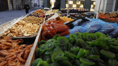 Na stičišču glavnih ulic v mestnem jedru, pri zvezdi, je vedno živahno, tudi sredi tedna. Tu je glavna gostinska ponudba. / Foto: Katja Petrovec