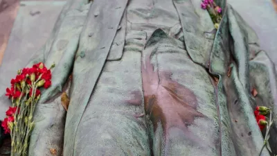 Victor Noir's grave in Père Lachaise Cemetery by Patrick Magaud, 1984.