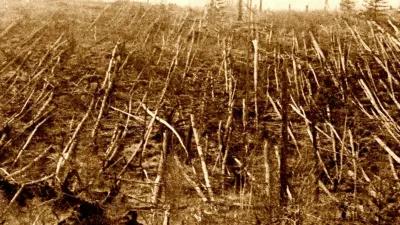 Vse okoli njega so bila drevesa podrta navzven, kot bi jih pokosil nevidni velikan. Toda v samem centru so še vedno stala. Bila so mrtva, brez vej in lubja, videti so bila kot velikanske telegrafske palice. To je bil dokaz, da je eksplozija prišla od zgoraj – vertikalni pritisk je drevesa pod njo le slekel, namesto da bi jih podrl.