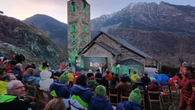 Cerkev Sant Joan de Boi je bila prizorišče odprtja smučarskega prvenstva novinarjev iz 23 držav. / Foto: Scij