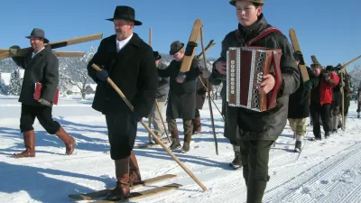 Starodobno bloško smučanje Foto: Dragica Jaksetič, arhiv RRA Zeleni Kras