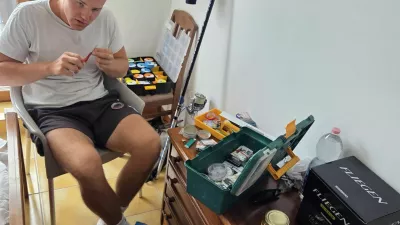 Mladinec Maks Koncilja med pripravo na tekmo v hotelski sobi