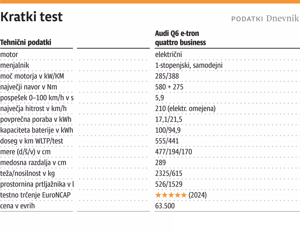 441 km ​je bil električni doseg štirikolesno gnanega Q6 e-trona na testu.