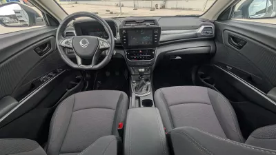 V notranjosti so stvari večinoma usmerjene v funkcionalnost, a s pridihom retro avtomobilske izkušnje. Vžig in izklop s fizičnim ključem. Ročna ročna zavora, za driftanje in nižjo ceno proizvodnje. Del standardne opreme je sicer tudi pomoč pri speljevanju v klanec, ker je speljevanje z ročno nekaj, kar je dobro znati, še bolje pa, če ti tega v praksi ni treba prakticirati. Multimedijska tablica je, čeprav ne najlepša. Hkrati je treba telefon povezati s kablom, če želimo zrcaliti zaslon in slediti navigaciji Googlovih zemljevidov. Za nadzor klimatske naprave so gumbi na dotik. Ročka menjalnika ni najlepša, je pa prestavljanje z njo dokaj elegantno in z dovolj kratkim hodom med prestavami. Tivoli premore celo dvoconsko klimo. Avto pa medtem pretirava z zvočnimi opozorili, ki so v novejših avtomobilih že tako moteča, zlasti ob napačno ocenjenih omejitvah. Odlična dilema, ko ti je otrok končno zaspal, avto kaže omejitev 40, čeprav je v resnici 70 km/h, ti pa voziš v koloni. Kaj bo prej zbudilo otroka – piskanje ali trobljenje?