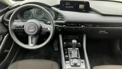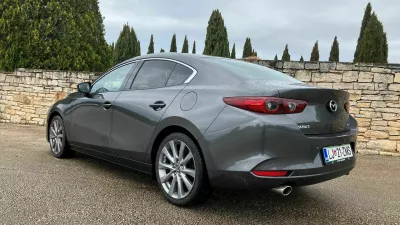 Limuzinska mazda3 je glede na dolžinsko mero 4,66 metra lahko tudi družinski avto, saj bosta dva odrasla na zadnji klopi sedela dovolj udobno in brez prostorske stiske, kot je že navada pri mazdah, pa je delovno okolje za voznika pisano z veliko začetnico. Sedi se udobno, po želji visoko ali nizko, kakor vam pač ustreza, ergonomija je na visoki ravni, do vseh menijev pa dostopamo bodisi z vrtljivim gumbom bodisi stikali na volanskem obroču. Barvni zaslon ni na dotik, česar pa sploh nismo pogrešali. Dodana vrednost je zagotovo projekcija podatkov o hitrosti in omejitvah na vetrobransko steklo, kar pride še kako prav z vidika varnosti, saj pogleda ni treba umikati s cestišča, še kako uporaben pomočnik pa je aktivni tempomat, ki sam pospešuje, zavira in ohranja varnostno razdaljo. Brez njegove pomoči si sodoben avto letnik 2025 težko predstavljamo. Tudi sicer je oprema exclusive line bogata, z ogrevanimi prednjima sedežema in volanskim obročem, 360-stopinjsko kamero in parkirnimi senzorji, bi si pa pri pametnem ključu želeli, da bi samodejno odklepal in zaklepal avto, tako pa se moramo dotakniti kljuke. Se pa zato športni podobi avtomobila še kako podajo 18-palčna lita platišča.
