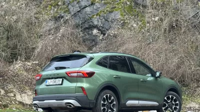 Tokratna kuga se je od prejšnjih razlikovala po tem, da je šlo za primerek z vrha ponudbe. Vsaj cenovno. Tako imenovani polni hibrid je bil namreč opremljen s štirikolesnim pogonom, obenem pa vrh ponudbe predstavlja tudi oprema active X, ki na prvi pogled prinaša bolj robusten, terenski videz. Pa ne zgolj videz – takšna kuga ima tudi višjo oddaljenost od tal, natančneje 17 centimetrov, kar ji ob vsem naštetem omogoča, če ne drugega, lažjo in udobnejšo vožnjo po neurejenih cestiščih, gozdnih poteh in podobno. Še nekaj je pri tej kugi zelo pozitivno – da gre kljub vsemu naštetemu, obilici moči v 2,5-litrskem bencinskem motorju in nekaj dodatne v majhnem elektromotorju za precej varčen avtomobil, saj smo na testu po dolgem času izmerili porabo, ki je bila v okviru tiste, ki jo navaja tudi tovarna.