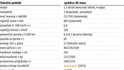 Kljub temu je bila izkušnja z lynk & co 08 prepričljiva. Avto uspešno dosega cilje in resnično ponuja vtis dosti bolj prestižnega in skoraj dvakrat dražjega vozila. Seveda za ceno strateško izbranega zategovanja pasu tu in tam. S polnim paketom opreme stane 53.990 evrov. Vstopni model stane štiri tisočake manj.