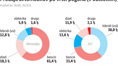 Precej drugačne so v tem pogledu razmere na celotnem trgu Evropske unije, na katerem je število prodanih hibridov lani prvič preseglo število tistih vozil, ki jih poganja zgolj bencinski motor (dizelske so presegli že zdavnaj), je pa po dolgem času upadla prodaja električnih vozil.