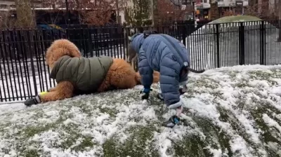 Na prvi pogled je videti kot prizor iz kakšnega nemega filma ali morda kot poskus astronavta, ki se privaja na zmanjšano težnost na Marsu. Toda v resnici gre za Grega, malega italijanskega hrta, viralne senzacije, ki se sredi zime sooča z enim največjih izzivov sodobnega psa: nošenjem čevljev.