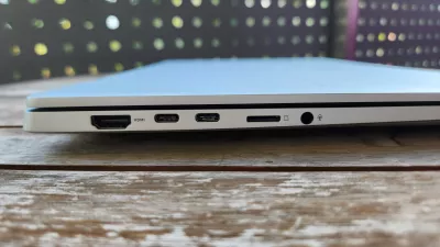 Testna naprava je imela 16 GB delovnega spomina in 1 TB prostora za shranjevanje. Vse skupaj pa je zapakirano v kakovostno izdelano kovinsko ohišje, ki ne škripa in je prijetno na otip. Prenosnik je tudi dokaj lahek. Tehta 1,43 kilograma. Debel je 1,6 centimetra. Ponuja pa tudi bogat nabor priključkov. Na levi strani najdemo vhod HDMI 2.1, dva vhoda USB-C 4.0, ki podpirata prenose s hitrostjo 40 Gbit/s in povezavo z monitorjem displayport ALT mode 1.4. Ob tem še režo za spominsko kartico microSD in vhod za žične slušalke. Na desni strani sta dva vhoda USB-A 3.2 Gen 1, ki podpirata prenose s hitrostjo 5 Gbit/s. Prenosnik je mogoče povezati s tremi zunanjimi monitorji z ločljivostjo 4K in 60-herčno frekvenco osveževanja ali dvema monitorjema z ločljivostjo 5K in 60-herčno frekvenco. Za hitro internetno povezavo skrbi standard wifi 7. Tipke na tipkovnici imajo za moj okus morda vseeno malo preveč hoda oziroma med tipkanjem delujejo preveč mehko.