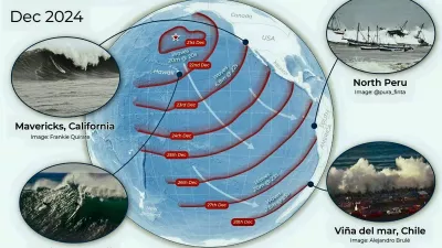 Potovanje teh valov je bilo epsko. Več kot 15 dni so neprekinjeno potovali čez oceane in pri tem prepotovali najmanj 24.000 kilometrov. S severnega Pacifika so se razširili vse do južnih obal Južne Amerike, prečkali zloglasni Drakov preliv v bližini Antarktike in 6. januarja 2025 končno dosegli južni Atlantik.