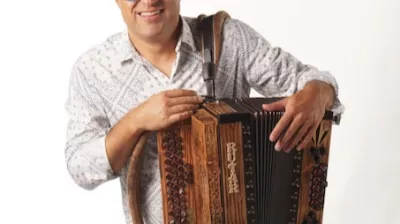 Boštjan Konečnik z najmanjšo in največjo harmoniko