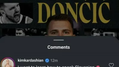 V pogovoru o najbolj norih govoricah, ki so jim ljudje nasedli, sta omenili tudi Luko Dončića. Pred časom se je namreč na družbenih omrežjih širil posnetek zaslona, na katerem je videti, kot da je Kim pod eno od Dončićevih objav napisala komentar: »Želim se naučiti govoriti slovensko.« Dodala naj bi še emotikon ustnic, on pa naj bi ji odgovoril: »Ne, prosim ne.«