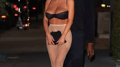 Kanye West je svojo ženo Bianco odpeljal na večerjo, ko je ta na sebi imela le nedrček in hlačne nogavice. S torbico si je prekrila golo mednožje. F instagram