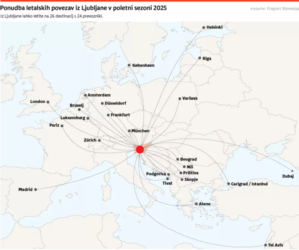 V tem kontekstu Ljubljana, kljub letošnji rasti, še vedno ostaja manjše regionalno vozlišče, ki ga številni potniki uporabljajo le takrat, ko se destinacija neposredno prekriva z njihovimi potrebami.