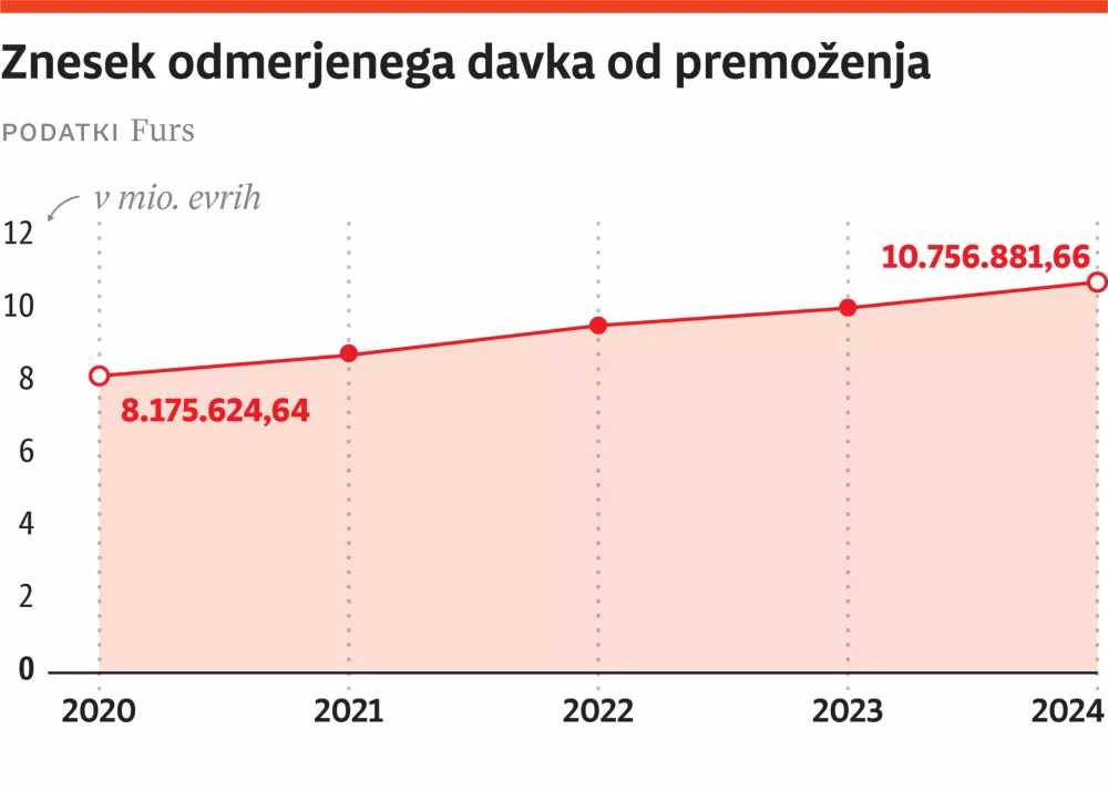 Lani je Furs izdal 9245 pozivov za predložitev napovedi za odmero davka od premoženja, za letošnje leto pa statističnih podatkov še nimajo zbranih. Vseh odločb o odmeri davka je bilo lani dobrih 158.700, znesek odmerjenega davka pa »le« dobrih 10,8 milijona evrov, kar je po ocenah poznavalcev glede na število potencialnih zavezancev le manjši delež možnega izplena, ki pa v zadnjih letih vseeno narašča.