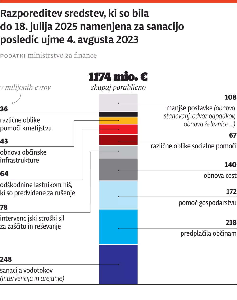 Čez dva tedna, v ponedeljek, 4. avgusta, bosta minili dve leti od strahovite ujme, ki je prizadela večino slovenskih občin. Od 212 občin jih je škodo na tisti dan prijavilo kar 183. Država je za odpravo posledic ujme do minulega tedna porabila okoli 1,174 milijarde evrov, je povedal finančni minister Klemen Boštjančič.