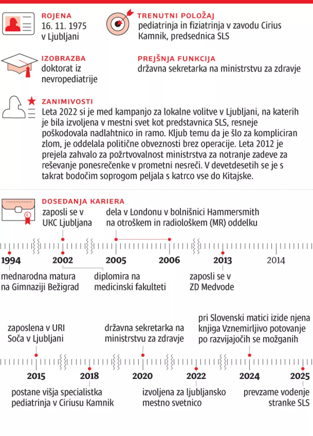 Skupaj s prof. Neubauerjem in pediatričnimi kolegi se je posvečala pomembnemu in zahtevnemu vprašanju – kaj se zgodi z možgani otroka, ko pride do pomanjkanja kisika in/ali prekrvavitve – torej pri hipoksično-ishemični poškodbi. Njena spoznanja so dobila mesto v priznanih mednarodnih revijah, kot so Journal of Pediatrics, European Journal of Pediatric Neurology in Neuro Endocrinology Letters, našteva Pirtošek. Kot političarko jo je srečal le enkrat – leta 2020, ko je bila državna sekretarka na ministrstvu za zdravje. »Skupaj s predstavniki civilnih združenj, bolnikov in gospo Štefanijo Zlobec iz Spominčice smo si prizadevali za nadaljevanje ustavljenega projekta Nacionalne strategije za demenco. Sestanek z njo je bil ključen, projekt je dobil potrebno politično težo, dokument pa je bil pozneje – tudi z veliko podporo dr. Ostrca v novi vladi – sprejet.«
