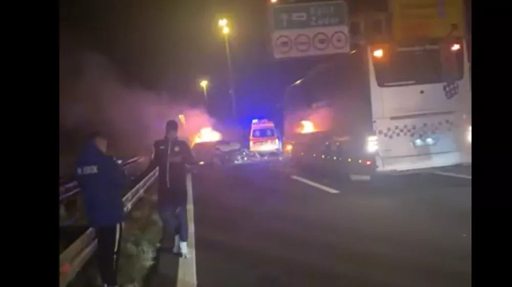 Njihov avtobus je trčil v zadnji del osebnega avtomobila, ta pa se je nato zaletel v drugo vozilo. V trenutku je izbruhnil silovit požar, poroča Dalmatinski portal.