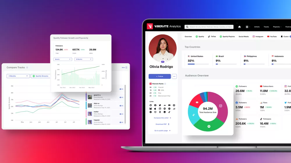 Viberate je ena najbolj celovitih platform za glasbeno analitiko. Uporablja se pri založbah, agencijah, menedžmentih, marketinških ekipah in A&R oddelkih, saj omogoča spremljanje uspešnosti izvajalcev in skladb na številnih platformah: Spotify, YouTube, TikTok, Apple Music, Instagram in drugih. Z le nekaj kliki lahko strokovnjaki dostopajo do podatkov, ki jim pomagajo oblikovati boljše strategije in sprejemati odločitve na podlagi dejstev.