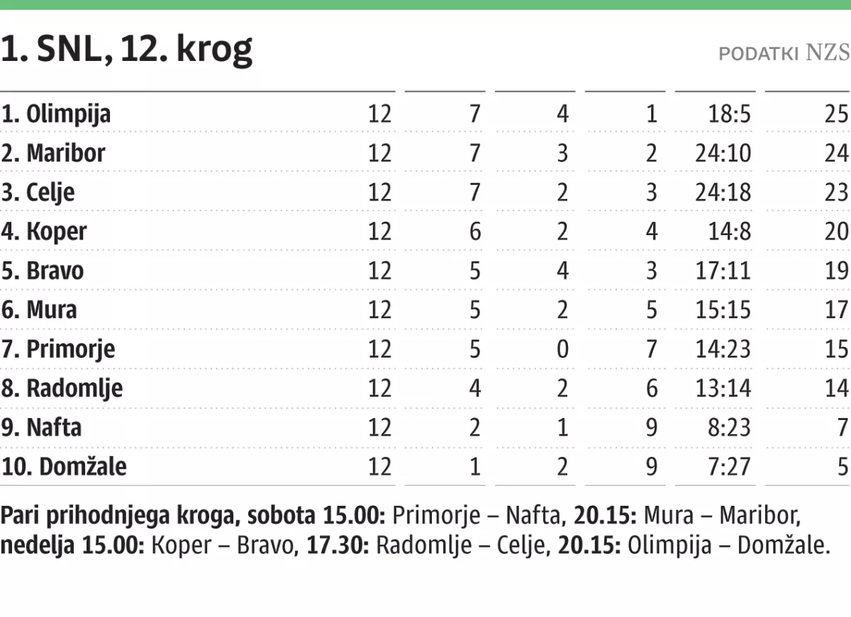Toliko golov (štiri), kot je Koper prejel na prvih 11 tekmah v slovenski ligi, mu jih je zabilo Primorje na primorskem derbiju na Bonifiki. Polom Kopra je še večje presenečenje, saj je v prejšnjem krogu v Ljubljani premagal vodilno Olimpijo. Očitno so po uspehu v prestolnici padli v cono udobja. »Nismo imeli svojega dne. Veliko prepoceni smo prejeli gole. Vsak ima pravico do slabega dne. V 11 krogih smo pokazali veliko kakovosti. Če se bomo iz te tekme kaj naučili, bo to dobra popotnica nadaljevanje prvenstva,« je bil miren trener Kopra Oliver Bogatinov. Junak zmage Primorja je bil 26-letni napadalec iz BiH Semir Smajlagić z dvema goloma: »Lep večer za Primorje. Pomembni sta le dve stvari, da smo osvojili tri točke in nadaljujemo s takšnimi predstavami.« Radomlje so na občinskem derbiju ponižale Domžale, ki so sicer povedle, nato pa prejele štiri zadetke.