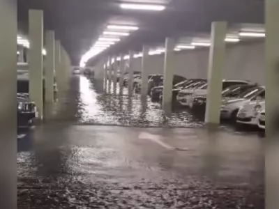 V Velenju močan naliv, poplavilo garažo nakupovalnega centra