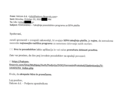 V imenu podjetja Halcom pošiljali lažna sporočila, podjetja ostala brez več kot milijona evrov